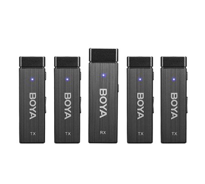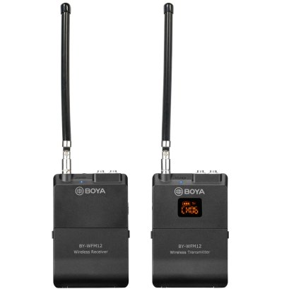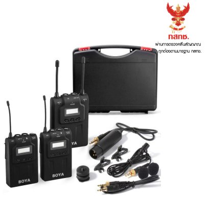 BOYA BY-WM8 ไวเลสไมค์ ใช้ความถี่ย่าน UHF ระบบ Dual-Channel มีตัวส่ง 2 ชุด ตัวรับสัญญาณ 1 ชุด ชุดรับ-ส่งไวเลสไมโครโฟนไร้สายที่ออกแบบมาสำหรับการใช้งานกับกล้อง DSLR, กล้องวิดีโอและเครื่องบันทึกเสียง เหมาะสำหรับการสัมภาษณ์ ที่ต้องการเสียงคุณภาพสูง มีขนาดกะทัดรัดน้ำหนักเบา ด้วยช่องสัญญาณความถี่ UHF 48 ช่อง สามารถ รับ-ส่ง สัญญาณได้ระยะทางไกลสุดได้ถึง 300 เมตร (ไม่มีสิ่งกีดขวาง) มีระบบตัดเสียงรบกวนทำให้เสียงที่บันทึกมีความคมชัดมากยิ่งขึ้น ตัวรับสามารถนำไปติดกับหัวกล้องได้มี Hot Shoe อแดปเตอร์ มีสาย Stereo mini plug มาให้เสียบใช้งานได้เลยหรือถ้าจะต้องต่อกับช่อง XLR ก็มีสายแถมมาให้อีก 1 เส้น สามารถปรับระดับเสียงหนัก-เบา มีช่องสำหรับเสียบหูฟังเช็คเสียงได้ และยังใช้งานง่ายด้วยจอแสดงผล LCD ตัวส่งมีช่องเสียบไมโครโฟนแบบแจ็คล็อคไม่มีหลุดแม้ถูกกระชาก หัวไมโครโฟนรับเสียงแบบรอบทิศทาง ใช้แบตเตอร์รี่แบบ AA